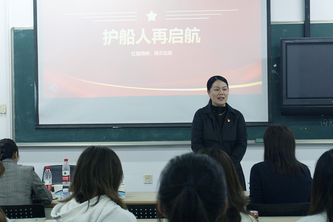 活动最后,魏洁寄语。她强调学生拿起画笔“画”说党史故事,能够很好地将党史学习和专业相结合,找到适合自己的学习方式,形式新颖活动有很强的吸引力和表现力;通过同学们的分享也能够感受到同学们是经过研读细品,挖掘中国共产党带领中国人民建设祖国的伟大历程中的故事、人物、事件,希望同学们能够在党史故事学习过程中汲取智慧、坚定信念、振奋精神;希望通过“护船人”勋章授予,传承红色精神,赓续精神血脉,厚植爱党爱国情怀,承担设计为民使命。