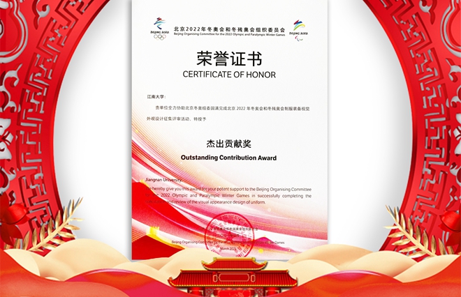 近日,从北京2022年冬奥会和冬残奥会组委会获悉,江南大学全力协助北京冬奥组委圆满完成北京2022年冬奥会和冬残奥会制服装备视觉外观设计征集任务,被授予“杰出贡献奖”。