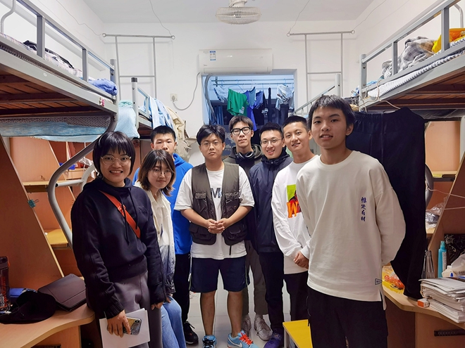为进一步了解新生对大学生活的适应情况,关心关爱新同学,设计学院2021级本科生9个专业26个班级班主任对新生宿舍逐个走访,就新生入住情况、生活习惯、学习规划等方面进行亲切交流,并细致地询问同学们的需求和建议。