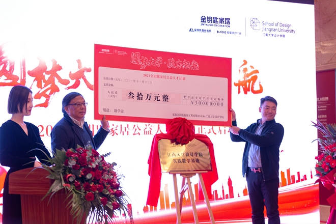 活动伊始,金钥匙家居公司董事长王镜先生致辞,他对企业及其业务进行介绍,表达了携手江南大学设计学院设立社会奖学金的喜悦之情。他表示,欢迎设计学院的同学们将金钥匙家居作为实践教学基地,开展设计实践。