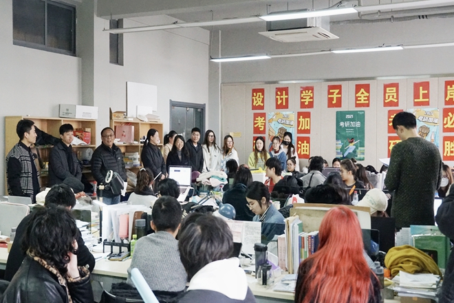 为了鼓舞学子考研士气,坚定考研信心。12月15日下午,设计学院党委书记邱建平、院长魏洁、党委副书记王晖、副院长曹鸣、副院长廖曦及2022届毕业班辅导员在设计学院A205教室为考研学子添动力、送温暖。