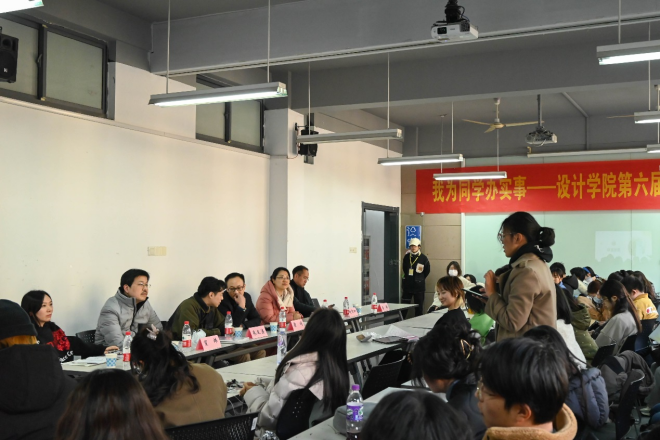为聚焦学生需求,聚力人才培养,12月17日下午,设计学院第六届系主任面对面在学院A306顺利开展,活动邀请了工业设计系梁峭、产品设计系钱晓波、视觉传达设计系朱文涛、公共艺术与美术系赵昆伦、环境设计系宣炜、服装系唐颖以及数字媒体艺术系王馨七位老师莅临现场,与同学们零距离交流,答疑解惑。各个专业、各年级50余名同学参加交流活动。