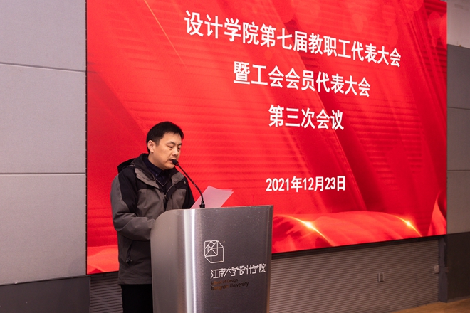 12月23日下午,设计学院第七届第三次教职工代表大会在一楼报告厅顺利召开,全院63名二级教代会代表出席此次会议。会议由学院分工会主席过宏雷主持。