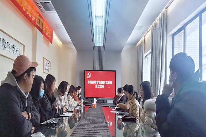 为充分做好寒假疫情防控工作,进一步加强党建引领,充分发挥基层党支部在重点任务、关键时刻的战斗堡垒作用和党员先锋模范作用,1月7日下午,设计学院寒假留校学生临时党支部成立仪式在B304会议室举行。学院党委副书记王晖、分团委书记吴雨琛、党建辅导员章琳及学生党员代表共同参加了成立仪式,会议由辅导员马倩如主持。