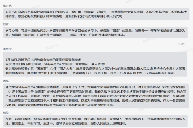 师生党员在线热议回信精神