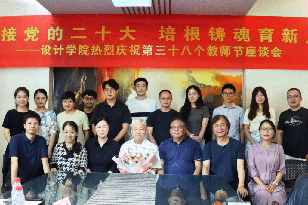 9月9日下午,“迎接党的二十大,培根铸魂育新人”设计学院热烈庆祝第三十八个教师节座谈会在学院B304会议室举行。院党委书记邱建平、院长魏洁、首任院长张福昌教授、环境设计系杨茂川教授、视觉传达与信息设计系王安霞教授、工业设计系主任梁峭副教授,以及设计学院青年教师代表、青年博士后、辅导员代表等参加座谈。座谈会由副院长曹鸣主持。
