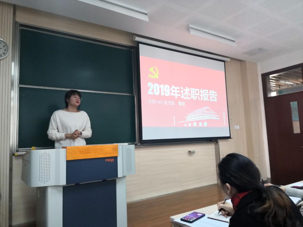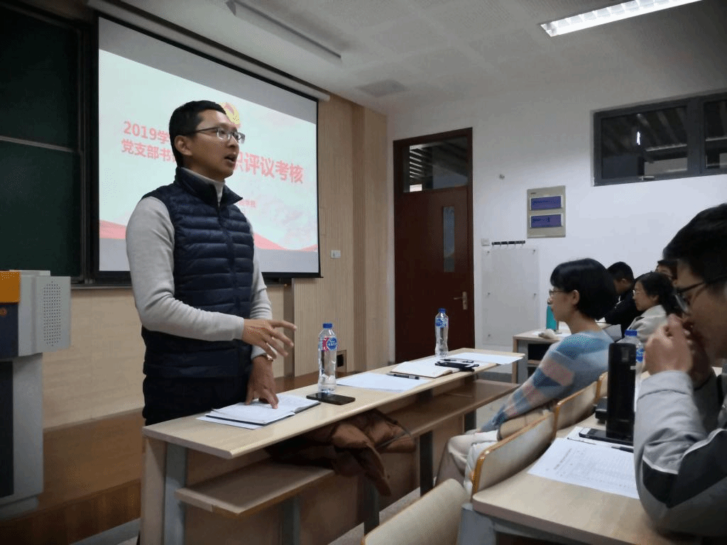 本次述职评议考核以“一述一评”的形式开展,首先各支部书记从履行党建责任情况、开展“不忘初心、牢记使命”主题教育工作情况、支部工作进展和成效,以及存在的问题和改进措施等四个方面进行了汇报。随后,各支部指导老师对其提问点评,最后由现场与会人员进行评议测评。