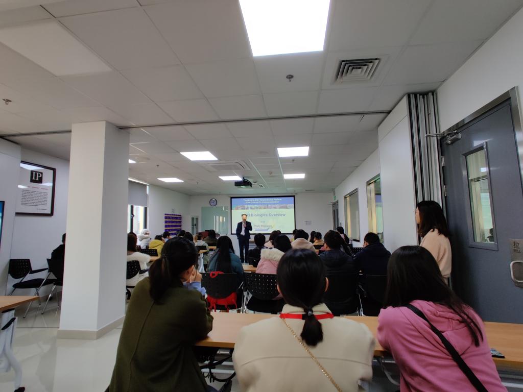 本次活动受到了药明生物企业的高度重视,质量保证部副总裁徐学健博士结合自身工作经历建议同学们,择业要选“大标杆”,就业要有“大规划”,人生要有“大情怀”。在同学们关心的面试问题上,他指出适应能力和再学习能力是企业选人的重要指标。随后,葛俊、白翮主任详细介绍了公司的基本情况。