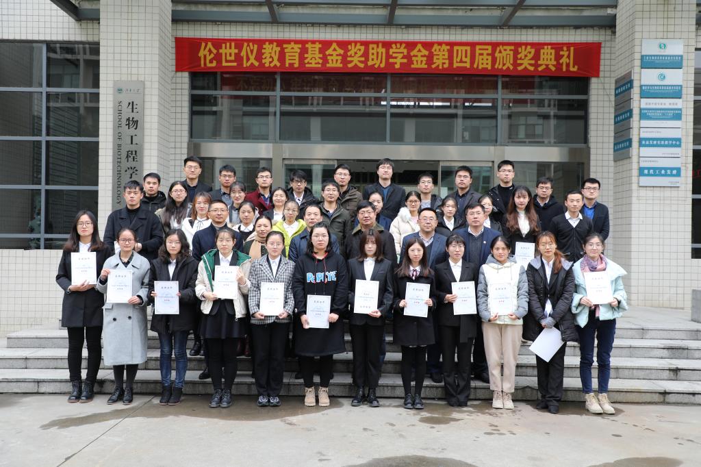 2019年12月19日下午,江南大学第四届“伦世仪教育基金”奖助学金颁奖典礼在生物工程学院茅台厅隆重举行。镇江东方生物工程设备技术有限责任公司董事长、“伦世仪教育基金”理事会副理事长丁春华先生、校长助理、研究生院院长、理事会副理事长兼秘书长堵国成教授,生物工程学院党委书记黄壮霞老师、院长许正宏教授、副院长刘龙教授以及获奖学生出席颁奖典礼。典礼由生物工程学院党委副书记兼副院长陈勇主持。
