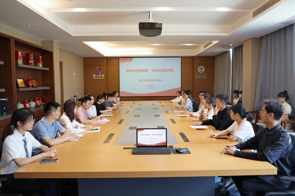 6月9日上午,生物工程学院酿造微生物学与应用酶学研究室党支部和生物2001朱宝镛特称团支部在B303会议室开展“青春孕育无限希望 青年创造美好明天”专题交流座谈会。校党委副书记符惠明到会督学指导,学院党委书记王维、分团委书记许亦男列席。