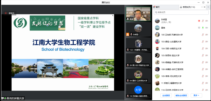 在7月6日上午,夏令营开营仪式在网络云端举行。开营仪式上,生物工程学院副院长聂尧教授致欢迎辞并进行学院介绍。他希望本次夏令营活动能够为有意在工业生物技术领域及相关学科发展深造的同学们提供一个交流学习的平台,使更多优秀大学生体会底蕴深厚的发酵工程学科特色,感受“善于实践 勇于创新”的生工精神,为今后的学习和深造创造更多机会。他从历史沿革、学科建设、人才培养、师资队伍、科学研究、社会服务、国际交流等方面介绍了学院情况。