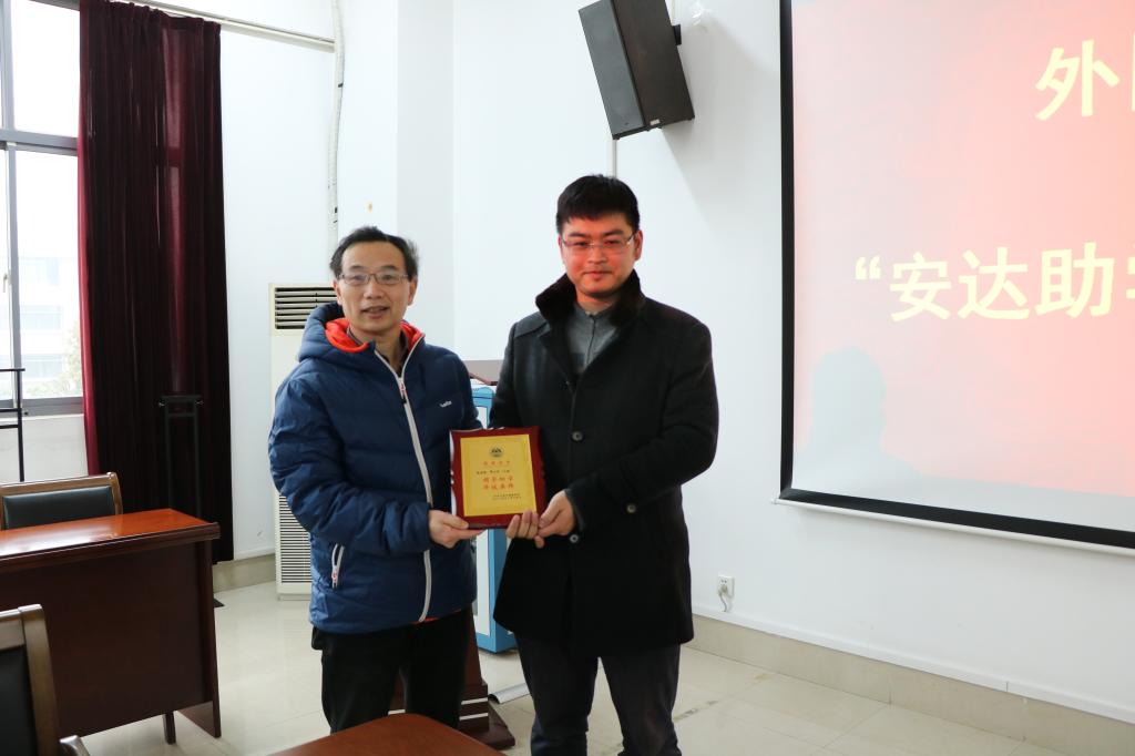 活动开始,首先张圆对“安达助学金”的设立做了简要的介绍。为激励江南大学外国语学院品学兼优、家境贫困的学生勤奋学习、发奋成才,无锡滨湖安达汽车综合性能检测有限公司于2017年设立江南大学外国语学院“安达助学金”每年壹万元,自2017年起至2020年共三年,资助外国语学院品学兼优的在校贫困学生。
