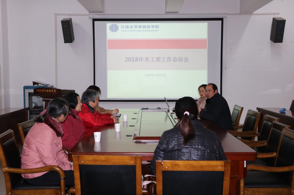 2019年1月15日下午外国语学院关工委工作总结会在A349召开。学院关工委名誉主任黄城芳,主任刘伯贤,副主任张晓虹,委员鲍国庆、吴艳敏、钱薇薇、杨艳、符瑰等出席会议,此次会议由刘伯贤主持。