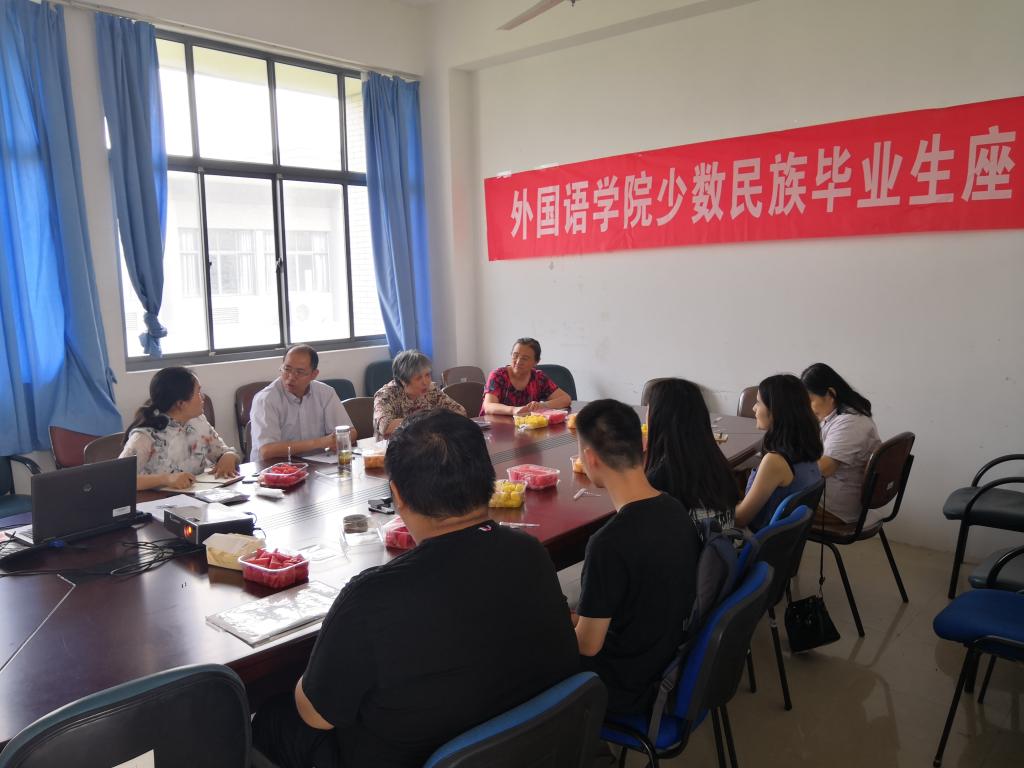 为更进一步关心2019届少数民族学生的学习、就业,帮助少数民族学生成长成才,6月11日下午,外国语学院在A425会议室召开了2019届少数民族毕业学生座谈会,学院毕业班少数民族学生参加了会议。院党委副书记刘伯贤、关工委张晓虹、鲍国庆、吴艳敏等老同志出席了会议。