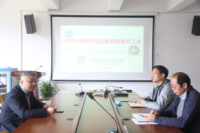 2020年4月22日上午,徐岩副校长赴外国语学院检查指导疫情防控工作,并走访看望了第一批次返校的毕业年级学生,院党委书记史志洪、副书记刘伯贤陪同。