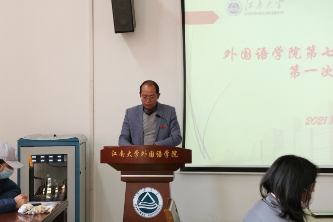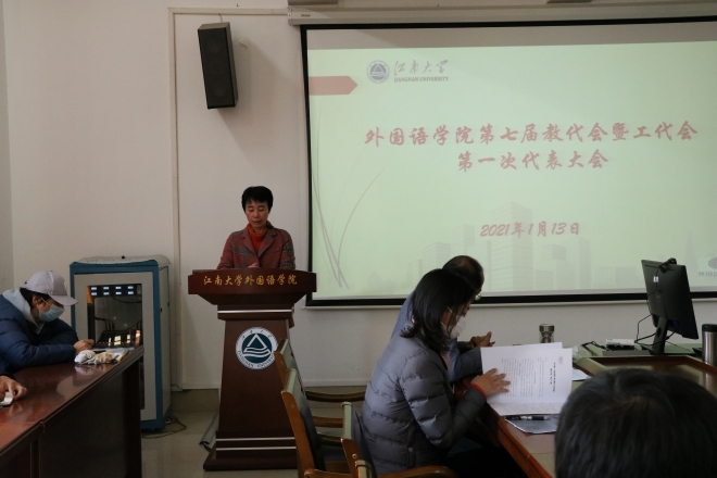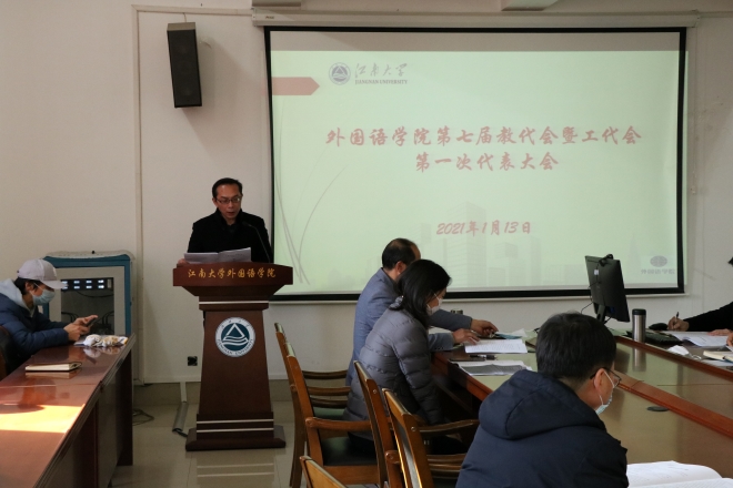 隆冬时节,阳光灿烂。2021年1月13日下午,外国语学院在文科楼A349召开第七届教代会暨工代会第一次全体会议,学院全体领导班子成员参加会议,共有40名教师代表参会。会议由学院副书记刘伯贤主持。