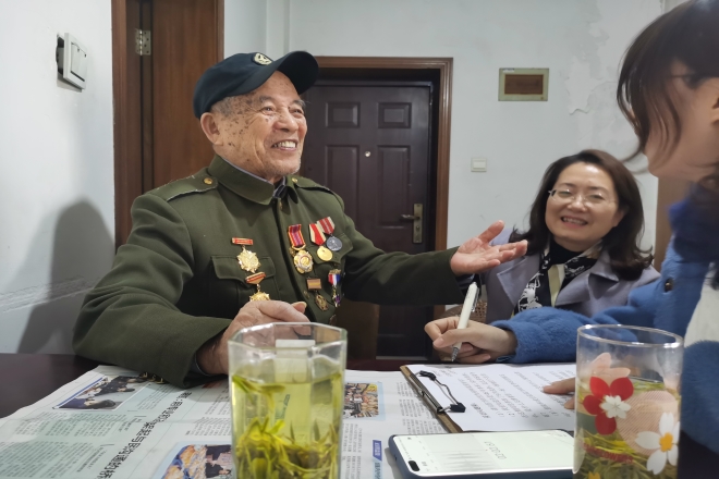 3月17日下午,外国语学院学生代表杨俊霞、徐昕、熊雪冰、揣皓博四位同学前往无锡市梁溪区看我校退休教职工许德山。学生代表为许老准备了慰问品,与许老进行了亲切的交谈,聆听许老抗战英雄事迹。