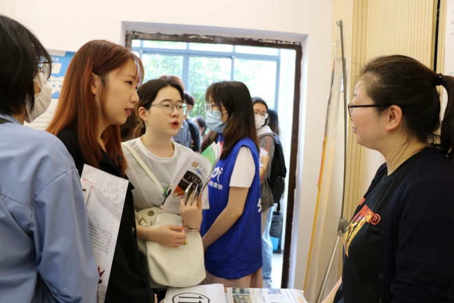 下午,招聘会正式开始,江苏国泰汉帛实业发展有限公司、卡特彼勒(中国)有限公司、星火教育、新东方教育、日语孑孓教育、南京猿习信息科技、鹰普(中国)有限公司等公司的展位前纷纷热闹起来,同学们积极向招聘单位咨询岗位信息并投递个人简历。学院领导和毕业年级辅导员积极与企业交流沟通,深化联系。江南大学的外语教学培养了大批出色的综合型人才,就业覆盖教育、外事、金融、国际贸易等各个领域。
