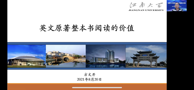 为落实立德树人育人目标、推动全民阅读、推进教学改革、提升英语学科素养,8月20日上午,江南外语教学研究中心在钉钉外教社“思飞学院”成功举办了“全国中小学英语整本书阅读线上培训”。与会专家就中小学教师在推荐和推行整本书阅读的过程中如何寻找适恰的阅读材料、开展有效的引导和高效的教学展开了深入讨论,并共同探索如何提高学生的语言能力、思辨能力,厚植家国情怀,培养符合国家建设需求、引领未来发展的高素质人才。