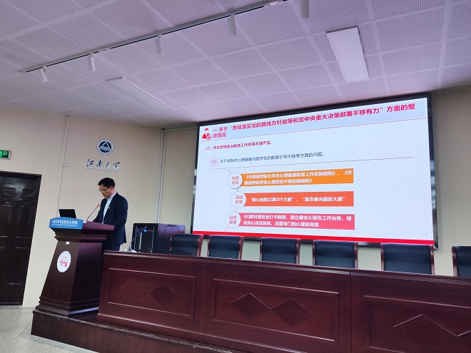 首先,史志洪向全院教职工汇报学院巡察整改的落实情况。他汇报了学院履行整改主体责任情况,整改任务落实情况和下一步整改工作方向。学院党委高度重视巡察整改工作,整改期间,学院巡察工作领导小组分析原因,细化整改任务,明确整改举措,研究部署解决整改工作中的重点难点问题,同时明确班子成员分工,夯实整改责任,对整改意见逐条逐项抓落实,确保巡察反馈意见中的每一个问题都得到整改。之后开展师生满意度测评,教职工填写巡察整改情况调查表。