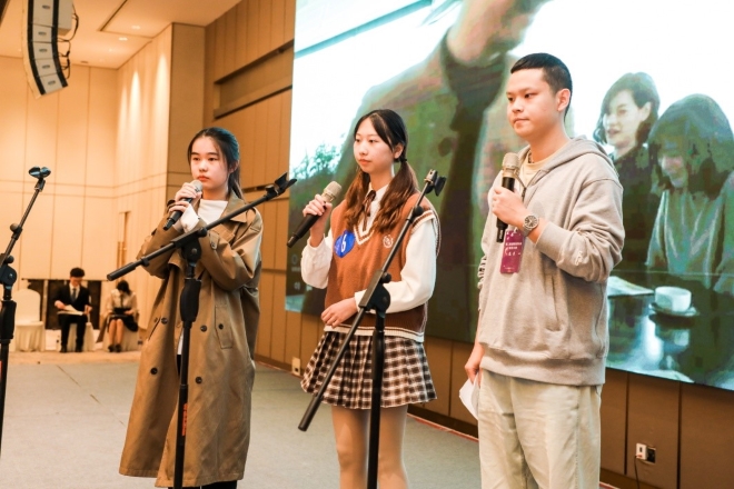 比赛中的三位同学(右起分别为姜焱、赵可颖、李澳)