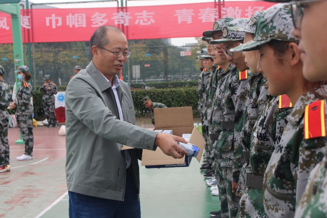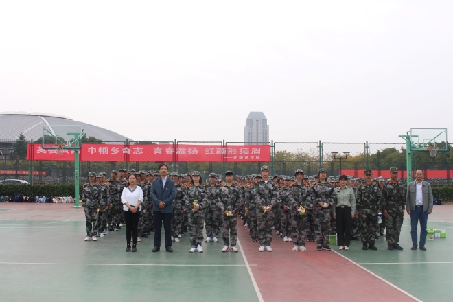 11月2日上午,外国语学院党委书记史志洪、党委副书记刘伯贤、分团委书记陆芳、辅导员顾海星来到军训场地,了解大一新生军训情况,亲切慰问并现场检阅了同学们的训练成果。