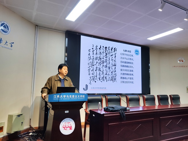 会议邀请了校党委常委、党委宣传部部长倪松涛作党史学习教育专题宣讲。倪松涛以《长征精神》为题,厘清了关于长征的基本概念,分析了长征胜利的根本原因,挖掘了长征精神的基本内涵。他指出,长征精神是具有原创意义的民族精神,我们要弘扬伟大长征精神,在新的长征路上继续奋勇前进。宣讲使用了丰富鲜活的史实,加入了精辟深刻的分析,受到教师们的欢迎。