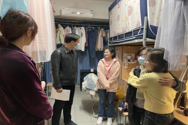 走访过程中,学院领导与同学们进行了亲切交流,详细了解学生的返校过程、宿舍网课学习、就业情况及返校后校园生活的感受,叮嘱同学们要严格遵守疫情防控期间校园管理要求,做好校园疫情防控下的自我管理和个人防护,要自觉坚持晨、午体温检测,并注意保持宿舍卫生整洁,如有异常情况,要及时报告,保持积极的心理状态,齐心协力共同营造安全有序的校园环境。特殊时期的宿舍走访,让同学们深切感受到学院的温暖和关怀。