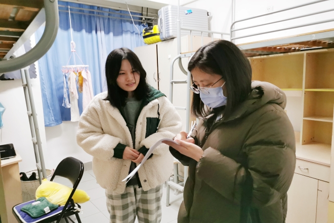 学院分团委书记陆芳走访润苑学生宿舍