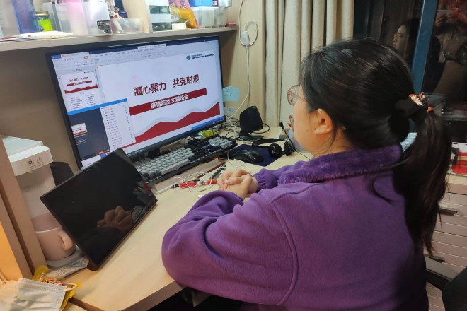 严格疫情防控,守护校园安全。为了提高外国语学院同学疫情防控意识,遵守校园疫情防控要求,增强战胜疫情的信心,外国语学院全体辅导员、班主任充分利用网络平台开展网络思政教育,在网络平台召开“凝心聚力,共克时艰”主题班会。