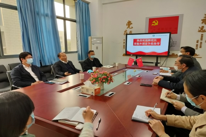 3月30日下午,校党委常委、副校长顾正彪带队调研外国语学院,人力资源处处长王鸿博、社科处处长王建华共同参加调研。外国语学院党政班子成员参加调研座谈。