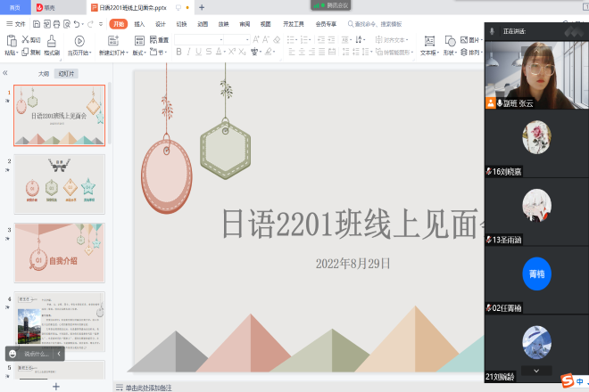 26号至31号,在新生报到前各班组织开展新生线上见面会。在线上见面会中,大家通过自我介绍拉近彼距离,副班主任分享了自己的学习生活感悟,班主任老师介绍了新生报到的相关事宜和要求,对前两周的网课学习注意事项进行介绍,提醒大家及时参加网课学习,同时对暂缓返校的同学进行安慰和鼓励。期间,外国语学院党委副书记刘伯贤携年级辅导员、新生班主任老师通过视频连线的方式对家庭经济困难新生开展“云”家访慰问活动,为新生送去学院的温暖和关心,带去信心和力量。