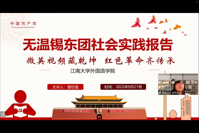 解人民之忧,以志愿精神担起社会责任。“江南春风入百家”实践团面向防疫一线医护人员子女开展“趣味知识学习”“体能锻炼学习”“党史团史学习”等趣味课堂,为医护人员排忧解难。访红色基地,以理论宣讲传承红色精神。“无温锡东”实践团实地参观无锡与温州的红色教育基地,并通过双语vlog传播中国声音,助力红色文化传播,让红色文化“活”起来!探民生现状,竭自身所能助力社会发展。“谱语江南”实践团推广国家通用语言文学,传承“普通话”文化,承担历史使命、助力乡村振兴。