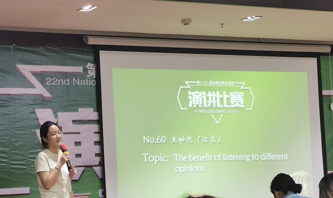 在演讲比赛中,英语2003班王妙然、国贸2103班王思嘉获一等奖;英语2003班高子涵、基地2201班张圣岳、工商2004班潘晨婕获二等奖,生硕2101班廖超、产设2201班饶姜未、土木2001班唐威获三等奖,国贸2102班段嘉妮、金融2201班管志豪获优秀奖。在风采大赛中,潘晨婕、王思嘉、段嘉妮获三等奖。廖超还获得了辩论比赛二等奖及优秀主持人奖。