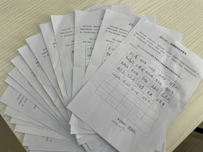 诚信考试不仅是对学业成果的尊重,更是个人品德修养的体现。班会上,各班主任详细解读了关于考试纪律的规定,通过剖析以往考试中的作弊案例,引导同学们深刻认识到作弊行为的严重后果,强调诚信应考是每位同学应坚守的底线,只有以诚信的态度对待考试,才能真正展现自己的学习成果,为未来的发展打下坚实的基础。为切实发挥同学们学习主体作用,各班副班主任、班长和学习委员不仅带领班级同学学习诚信考试的重要性,围绕学习效率和复习计划,为同学们分享了自己在学习中遇到的问题及解决方法,鼓励大家互相学习、共同进步。班会结束后,各班级组织学生签署了《诚信考试承诺书》。