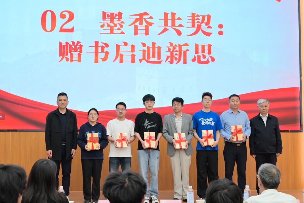 墨香共契:赠书启迪新思。张华宣读《物联网工程学院党团结对共建实施方案》,宣布自动化系教工党支部与自动化2305蛟龙号特称团支部、信息技术系教工党支部与物联网2303瞿秋白特称团支部、电气工程系教工党支部与电气2302雷锋特称团支部结对共建。随后,娄国栋、张华为结对党团支部赠书。一本本承载着党的先进理论与实践智慧的书籍如同一把把金钥匙,助力师生在理论学习中坚定信仰、锤炼品格、砥砺前行。