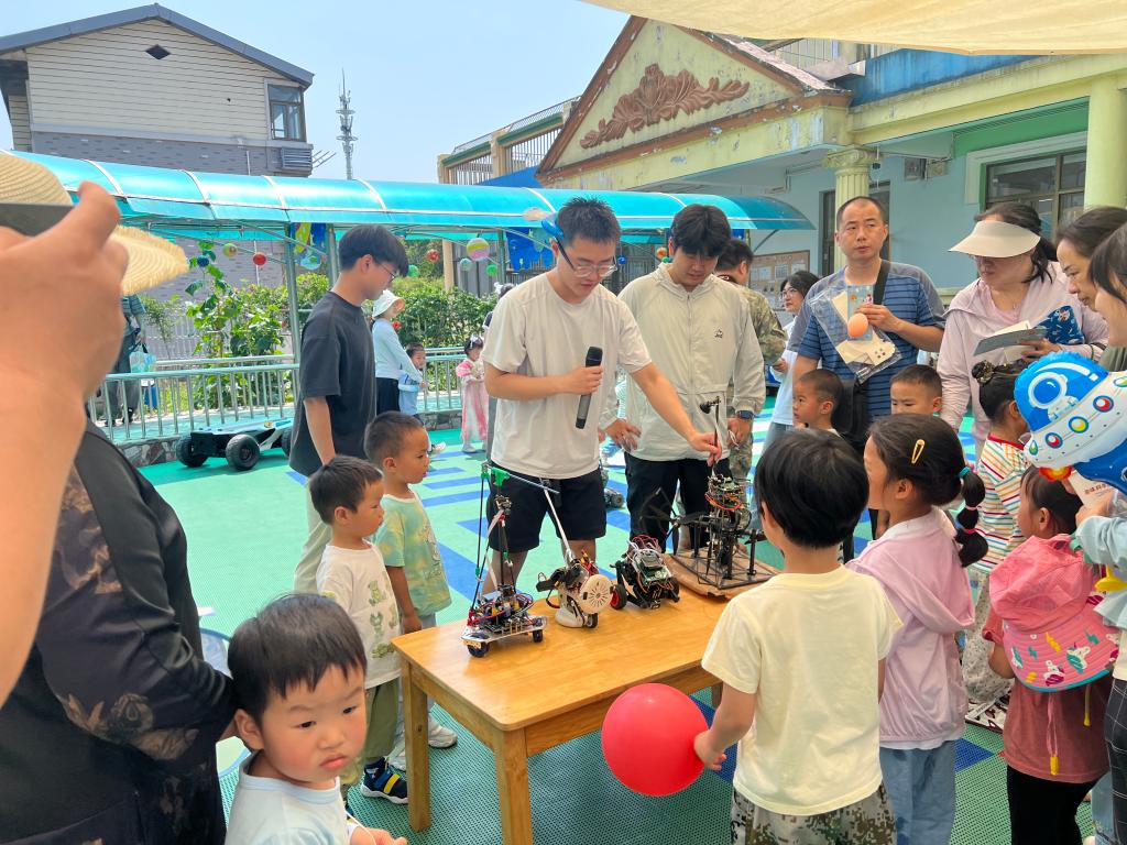 为响应习近平总书记“对科学兴趣的引导和培养要从娃娃抓起”的号召,今年“六一”国际儿童节来临之际,江南大学物联网工程学院大学生创新实践基地I-link智能科技科普协会联合智能车俱乐部和机器人俱乐部志愿者走进无锡市神州娃幼儿园,通过沉浸式科学体验的方式,为孩子们呈现了一场别开生面的科普教育游园活动,带来了一场充满趣味与惊喜的科技盛宴。