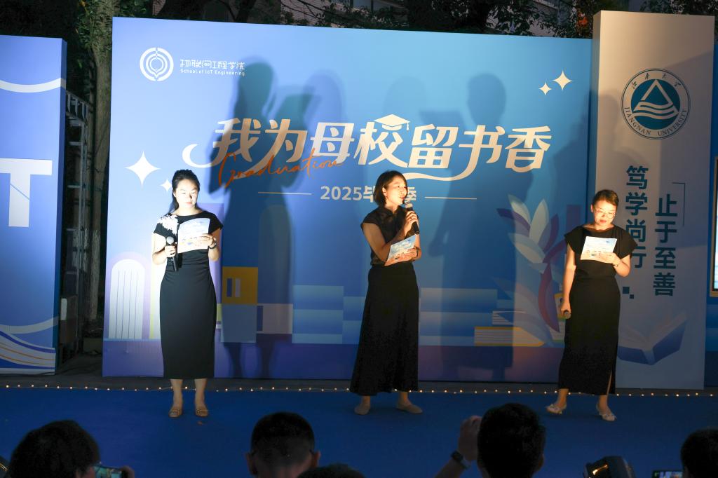 星河映照离歌,青春奔赴山海。6月17日晚,由物联网工程学院与集成电路学院联合主办的“不负热爱,奔赴山海”2025届毕业歌会在物联网工程学院正门口深情唱响。物联网工程学院党委书记张华、院长栾小丽、党委副书记兼副院长吴妍、分团委书记洪筱、教师代表及全体辅导员与毕业生齐聚一堂,在动人旋律中共叙同窗情、师生谊,为大学时光镌刻下温暖的句点。