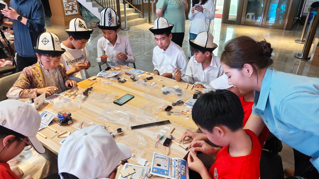 智趣科普行,播撒科技新火种。8月14日,夏令营开营仪式在阿合奇县玛纳斯史诗馆举行。阿合奇县委副书记、无锡前方工作组组长俞震旦,团市委相关负责人,江南大学物联网工程学院党委副书记、副院长吴妍等出席,两地40余名青少年共同参与。仪式在雄浑激昂的《玛纳斯》演唱中拉开帷幕,两地青少年联袂献上文化交融表演。俞震旦在致辞中表示,本次活动是锡阿交往交流的暖心实践,生动体现“中华民族一家亲”的深厚情谊。随后,在“民族团结结对子”环节中,孩子们互赠礼物、传递情谊。