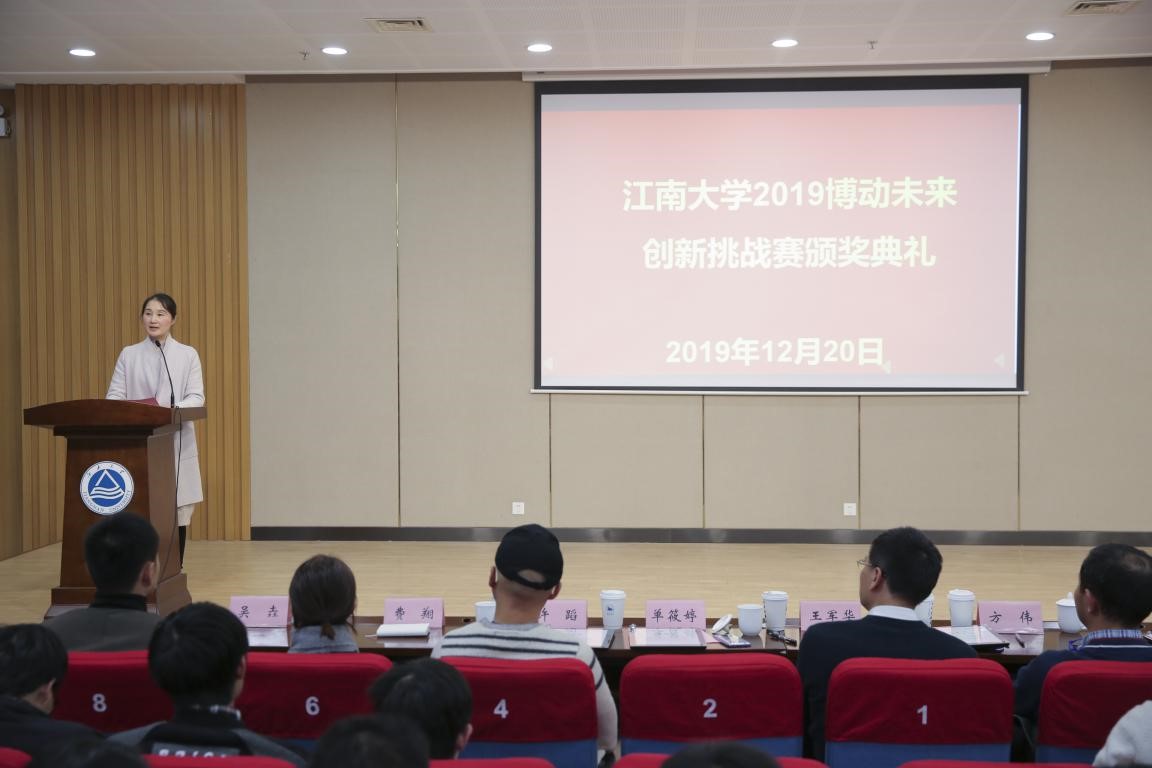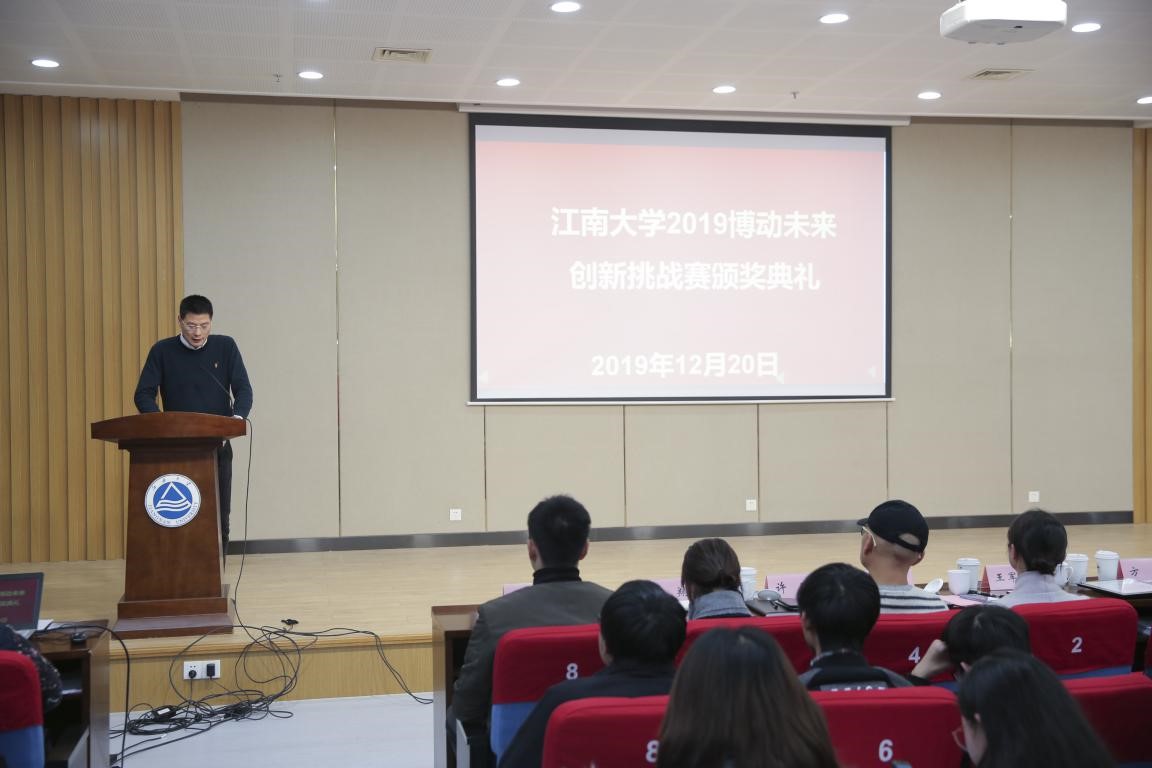 2019年12月20日,江南大学“博动未来”创新挑战赛总决赛暨颁奖典礼在图书馆三楼报告厅圆满落幕。江南大学物联网工程学院计算机系主任方伟教授,博世汽车柴油系统有限公司技术总监王军华,博世汽车柴油系统有限公司共轨高压泵开发部总监李常骏,博世汽车柴油系统有限公司成本控制部总监许葆淳,无锡金点水视界传媒广告有限公司总经理、教育部万名创业导师库导师许蹈,江南大学学生工作部(处)副部(处)长单筱婷,江南大学团委副书记单云婷等7位专家学者担任总决赛评委。博世汽车柴油系统有限公司企业传播部高级经理费翔、物联网工程学院党委副书记、副院长耿向阳、物联网工程学院分团委书记吴垚与现场400余名观众共同观摩比赛。