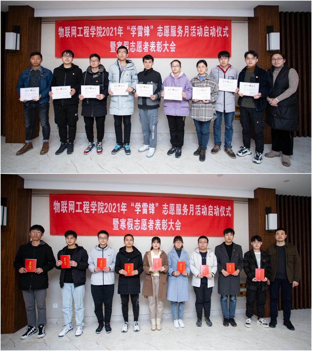 3月5日,值第58个学雷锋纪念日和首个江苏省志愿者日到来之际,物联网工程学院2021年“学雷锋志愿服务月”活动启动仪式暨寒假志愿者表彰大会在学院B222会议室举行。学院党委副书记兼副院长孔丽丹、分团委书记吴垚、研究生支教团校友潘妍如、学生会执行主席叶芝蓓、雷锋特称团支部书记霍雷霆及志愿者代表、特称团支部代表等出席会议,全体寒假志愿者、各团支部书记等线上参会。分团委老师杨兵主持会议。