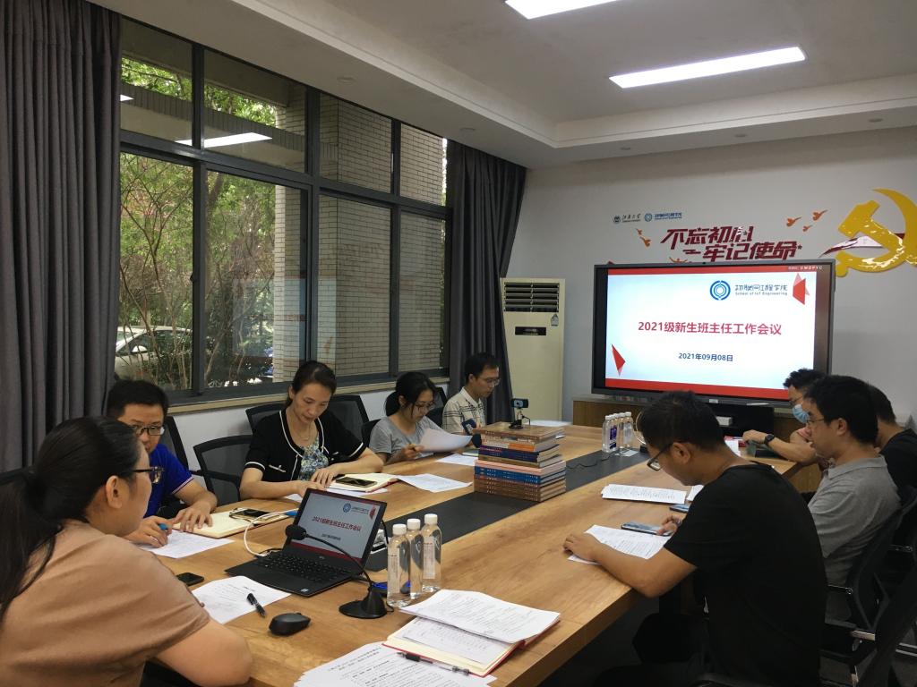 9月8日下午,物联网工程学院新生班主任迎新工作推进会在学院D112会议室举行。物联网工程学院党委副书记孔丽丹、2021级辅导员张圆及全体新生班主任参加会议。