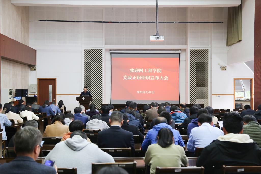 3月8日,物联网工程学院召开党政正职任职宣布大会,校党委常委、副校长堵国成出席会议并发表讲话。会议由物联网工程学院党委副书记、副院长孔丽丹主持。物联网工程学院党政领导班子及全体教职工出席会议。