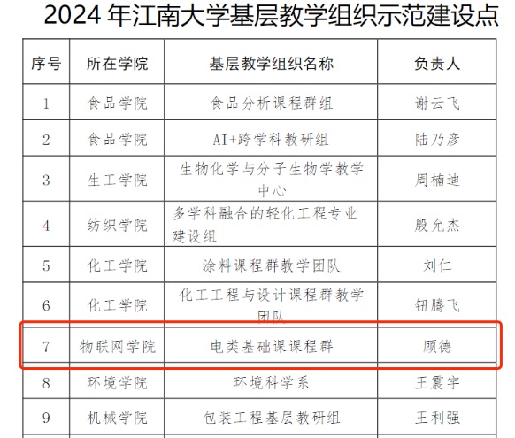 近年来,物联网工程学院着力建设基层教学组织建设,此项获奖作品即来源于数字电子技术课程实验教学团队,该团队所在的课程群于本月正式入选江南大学基层教学组织示范点建设。