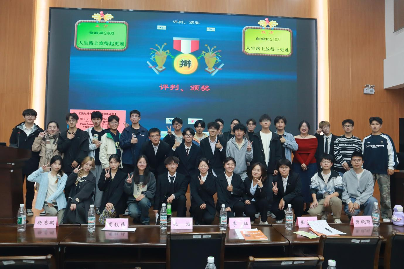 本届辩论赛自9月份启动以来,经过小组赛、半决赛等两个多月的紧张角逐,物联网2403班和自动化2403班从12支参赛队伍中脱颖而出,成功晋级决赛。决赛中,两队围绕“人生路上拿得起/放得下更难”这一辩题各抒己见。正方物联网2403班代表队认为“人生路上拿得起更难”,而反方自动化2403班代表队则持相反观点,认为“人生路上放得下更难”。双方辩手从逻辑、情感、社会现实、专业选择等多个角度展开论述,双方观点鲜明、论据充分,赢得了现场观众的阵阵掌声。在自由辩论环节,双方辩手更是妙语连珠、针锋相对,充分展现了双方团队敏捷的思维和出色的辩论技巧。观众们也积极参与提问环节,与辩手们进行了深入的交流与探讨。经过激烈角逐,反方自动化2403班获得冠军,同时正方物联网2403三辩张猛获得本场“最佳辩手”的称号。