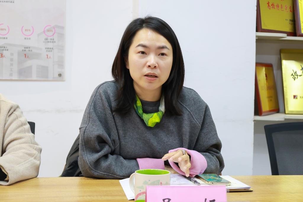 李萍对物联网工程学院学工团队的热情接待表示感谢。她介绍了数字科技与创意设计学院的学工概况,分享了学院的特色做法和成果,并分析了目前面临的问题与难点。她指出,目前学生工作呈现出诸多新的特征,如何精准把握时代特点并主动求变是全体辅导员面对的一个重要课题。希望通过此次交流,能够共同梳理问题、剖析根源,在思维碰撞中找寻创新灵感,借鉴彼此的成功经验和有效策略,突破当下工作中的瓶颈。