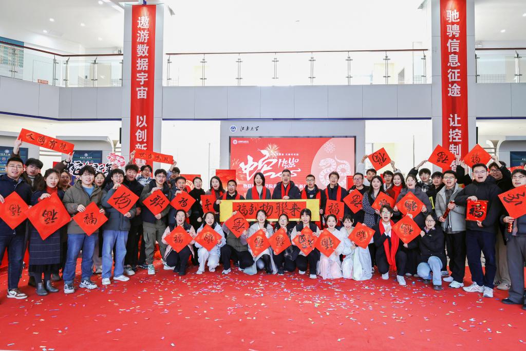 为弘扬传统文化,共筑物联新风,12月31日,物联网工程学院在学院大厅举办“巳巳如意,福满物联”2025新年游园会活动,喜迎元旦,欢度佳节。学院党委书记张华,院长栾小丽,党委副书记兼副院长吴妍,副院长陶洪峰、郭亚,院长助理等与广大师生欢聚一堂,共贺新年。