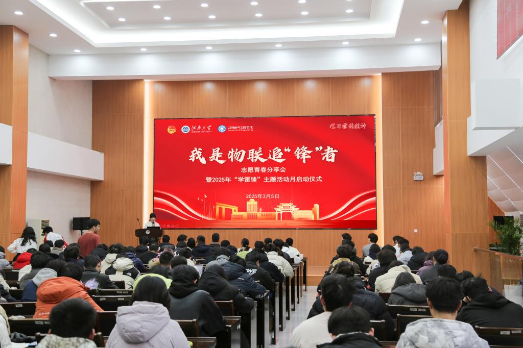 3月5日,正值第62个“学雷锋纪念日”与第26个“中国青年志愿者服务日”,物联网工程学院“我是物联追‘锋’者”志愿青春分享会暨2025年“学雷锋”主题活动月启动仪式在D328报告厅顺利举行。江南大学团委副书记单云婷、无锡市滨湖区团委副书记肖江、江南大学学生工作处学生管理科科长杨艳、物联网工程学院党委书记张华、党委副书记吴妍、分团委书记洪筱等出席活动,学院各年级辅导员与学生代表共同参与活动。活动由电气工程23级研究生吴雪主持。