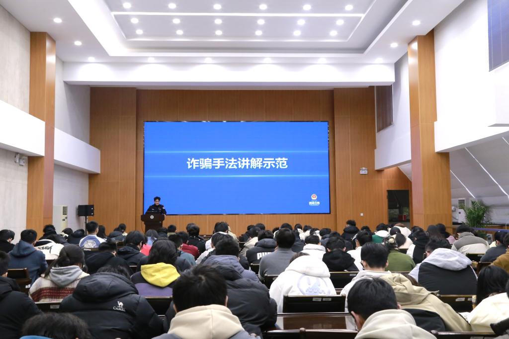 3月14日下午,为进一步增强同学们的反诈防骗和消费维权意识,学院联合无锡市滨湖区雪浪派出所在D328会议室举办“筑牢反诈防线,共护消费权益”校园安全专题讲座。滨湖区雪浪派出所王焱玮警官应邀主讲,150余名师生现场参与。