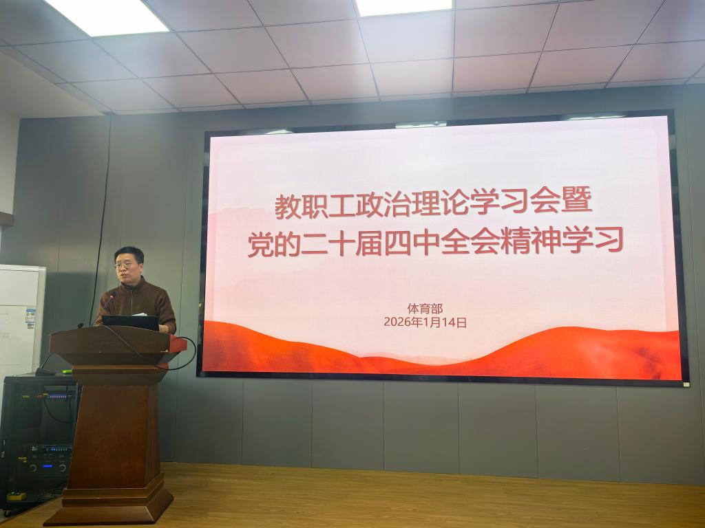1月14日,体育部学习贯彻党的二十届四中全会精神宣讲会在体育中心114举行。马克思主义学院副院长张乐教授受邀作专题宣讲,体育部全体教职员工参会。会议由党总支书记周云龙主持。